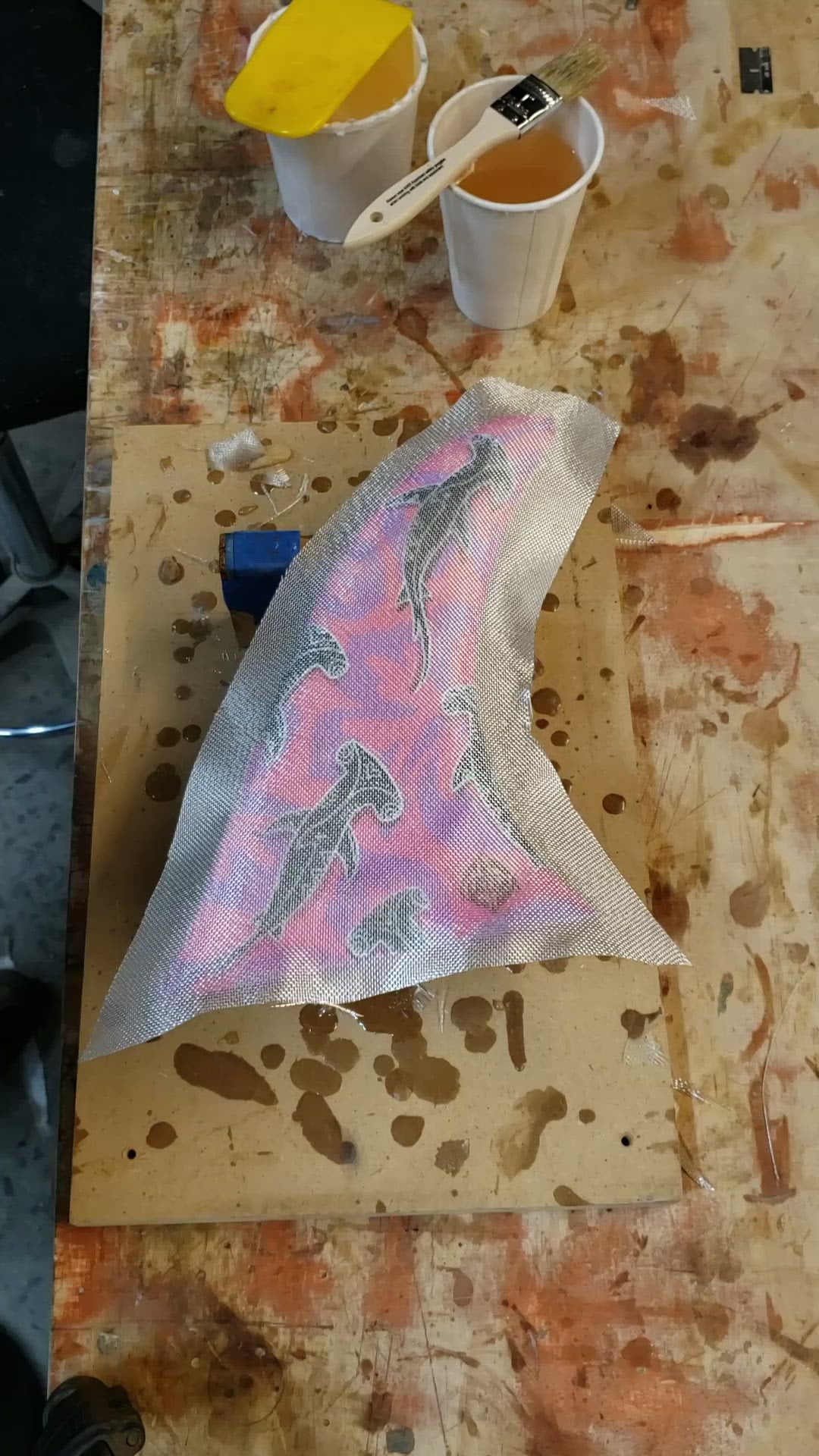 This one-of-a-kind longboard fin was hand painted by Hawai'i-based artist Eduardo Bolioli as part of the Ventana Fin Artist Project.