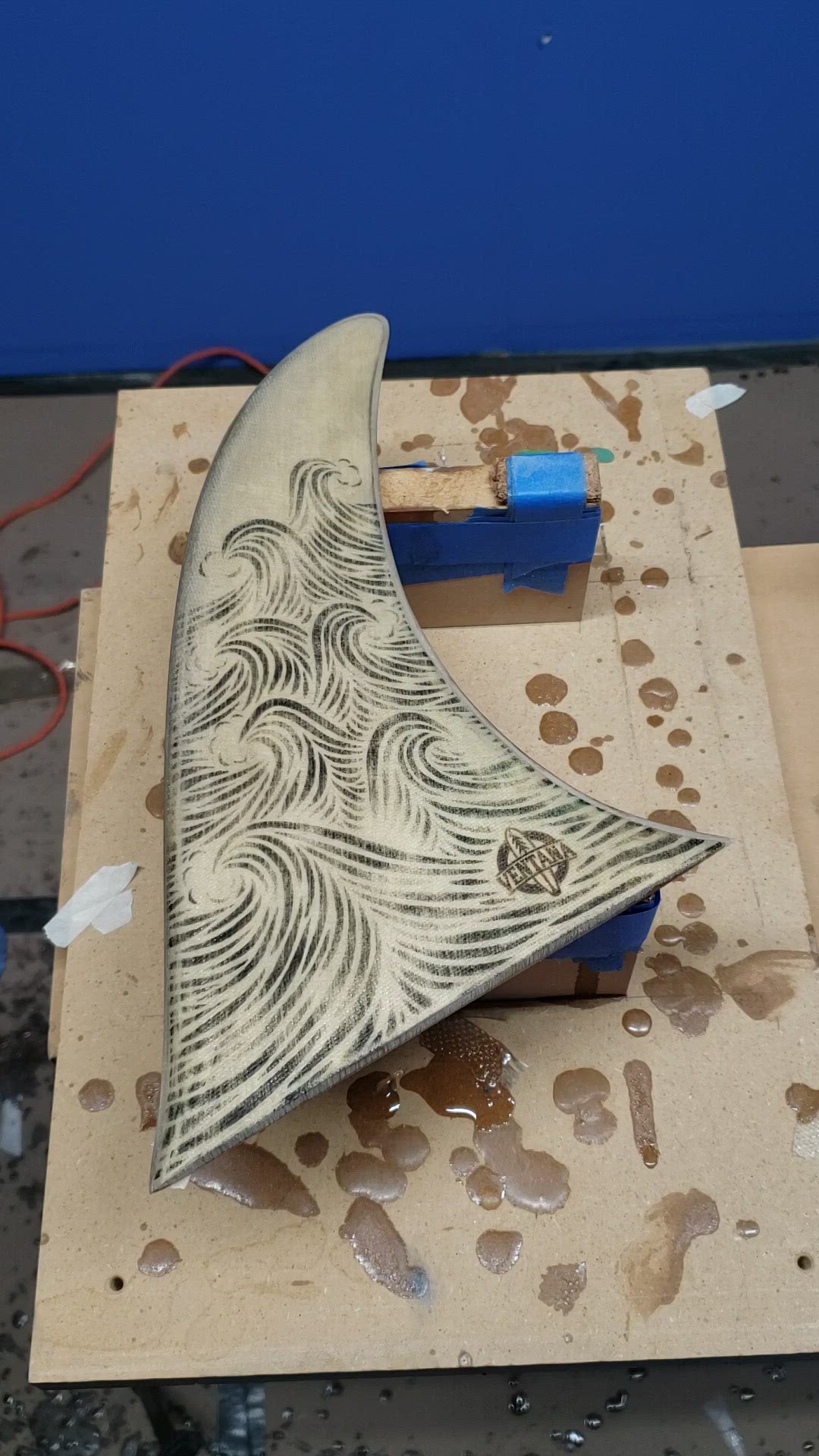 The fin can be fiber glassed onto any surfboard or displayed as an art piece. You can choose a reclaimed wood base from more than ten different historical sources - original Santa Cruz Beach Boardwalk redwood, salvaged elm from San Jose State University, Alaskan yellow cedar from the original Hollywood Bowl benches, Cabernet Sauvignon wine tank redwood, and many more. After purchase, we'll contact you to help you select your base which can be engraved with the Ventana logo or with a custom engraving of your choice.