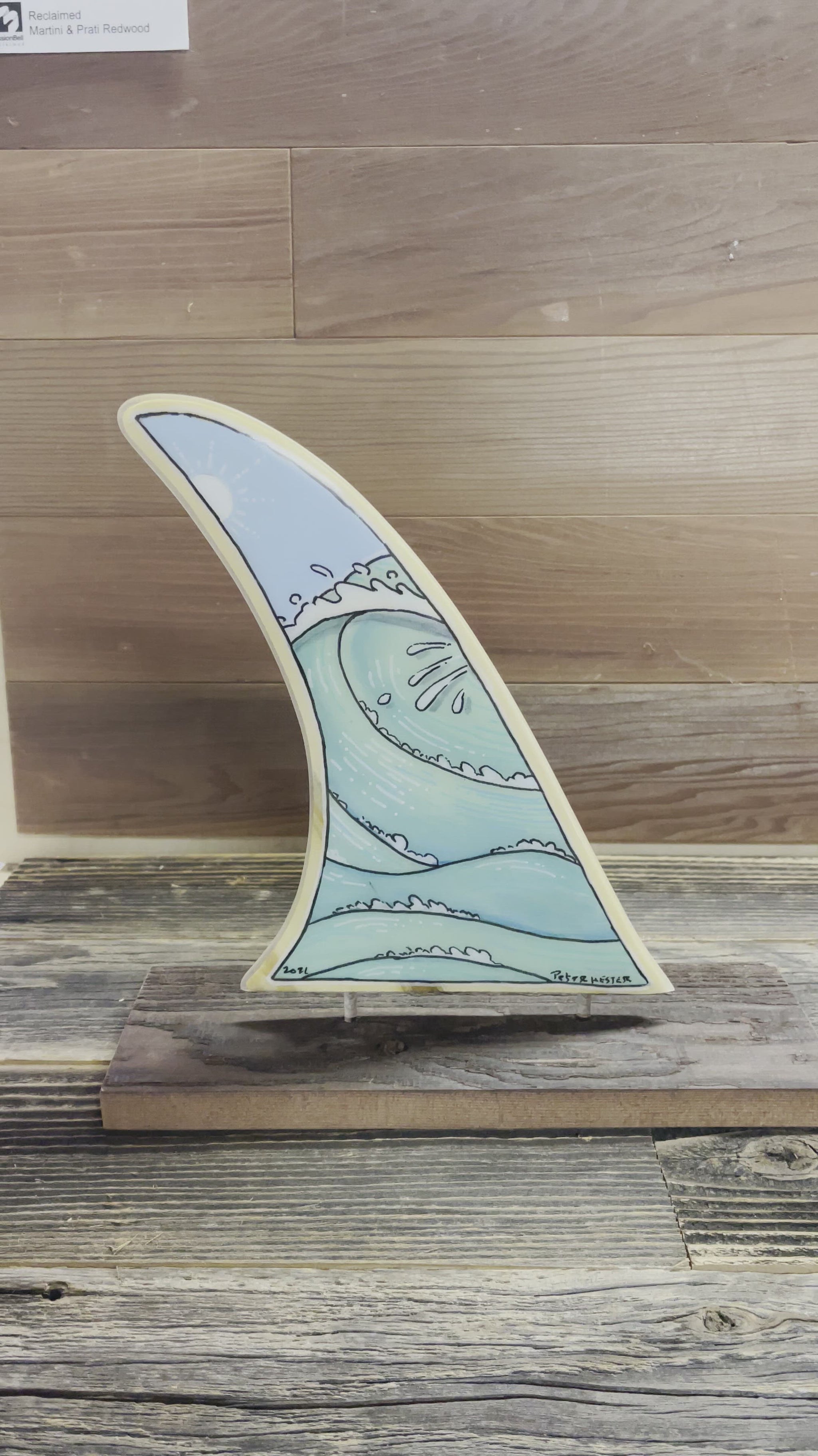 This fin can be fiber glassed onto any surfboard or displayed as an art piece. You can choose a reclaimed wood base from more than ten different historical sources - original Santa Cruz Beach Boardwalk redwood, salvaged elm from San Jose State University, Alaskan yellow cedar from the original Hollywood Bowl benches, Cabernet Sauvignon wine tank redwood, and many more. After purchase, we'll contact you to help you select your base which can be engraved with the Ventana logo or with a custom engraving of your choice.