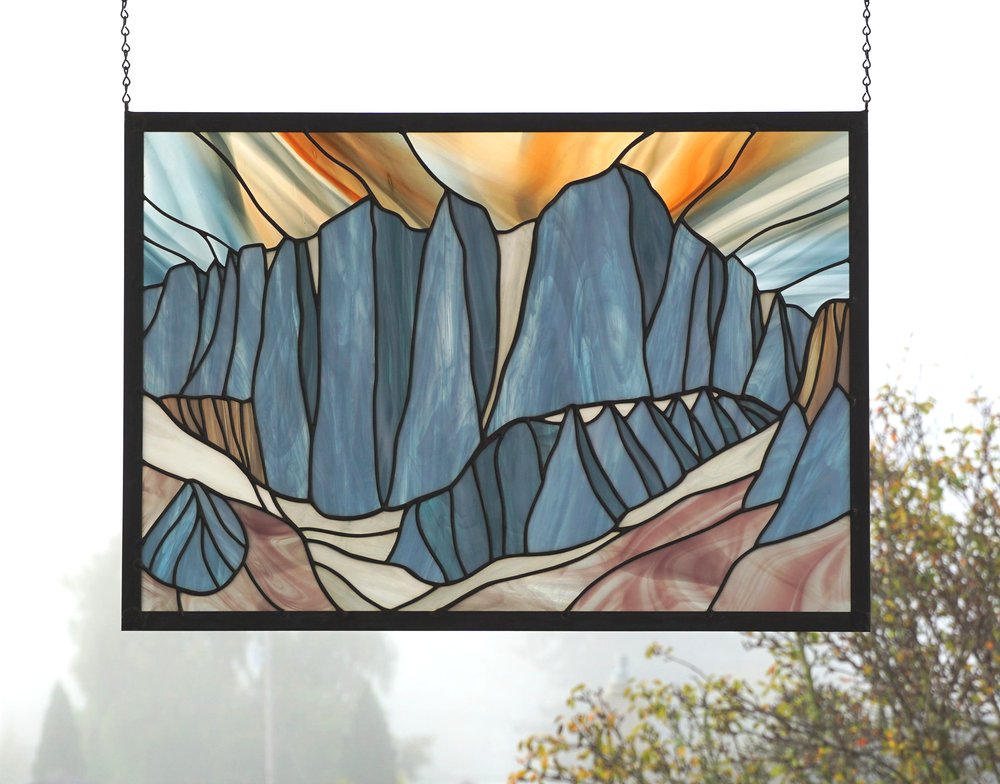 When not on the ocean, Haven can be found in the mountains. The ultimate goal is to capture that end-of-day feeling when you're just about to reach camp and you turn back to see the mountain you just summited alight with alpine glow. This portrait in glass of Mount Whitney in the Southern Sierra mountains of California is electrifying with a glowing sunset sky of mouth blown Glass.